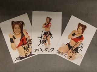 直筆サイン入り 女子プロレスラー 生写真3枚セット 2013年5月19日 日付入り 12.7x8.9cm