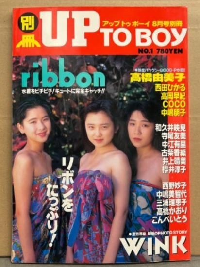 別冊 UP TO BOY アップトゥボーイ 1991年 No.1 ribbon 両面(片面 水着)ピンナップ付き+水着&インタビュー36p・高岡早紀・西田ひかる・和久井映見