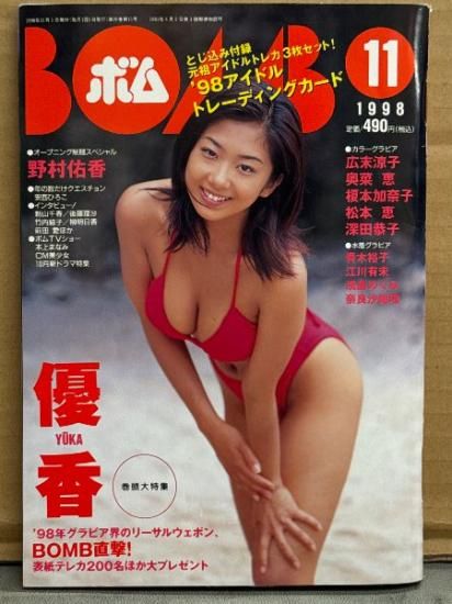 BOMB ボム 1998年11月225号 トレカ3枚付き 優香 大特集32p・青木裕子 ビキニ・川合千春 セミヌード・野村佑香 制服・奈良沙緒理 ビキニ